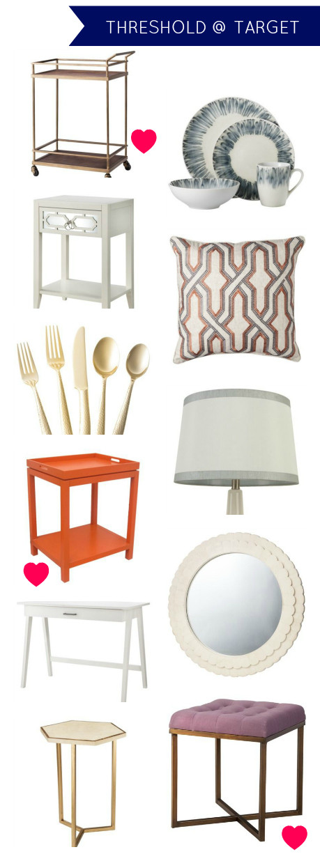 Target has been on fire lately with their Peter Pilotto for Target line and with great home lines, including Threshold. I am obsessed with the bar cart and pink tufted ottoman below. Also, the white bedside table is perfect and why spend and arm and a leg for a West Elm Parsons Desk when you can get the equally cute one below??