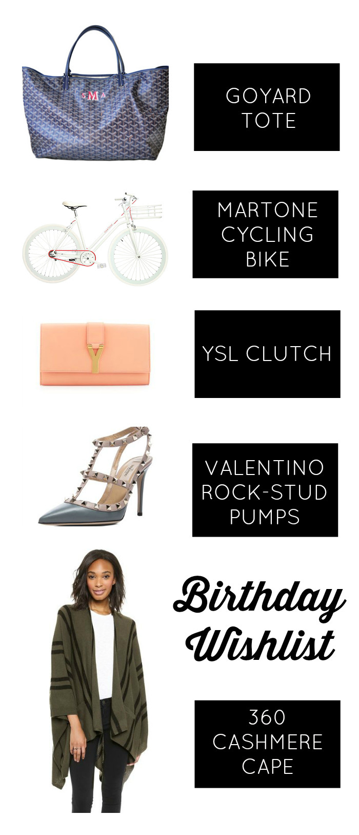 My birthday is Friday and with a cross-country move in the last week under my belt, I haven't put too much thought into presents. I don't actually expect to get any of the below because I have pretty much asked for furniture and other home accessories for our new apartment but if I wereeee to get something I would love anything off of the below list. I would like anything and everything below at anytime for that matter! Dream on, Clare. Dream on...